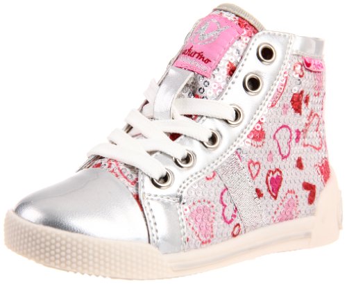 She looks simple and sassy in this chic sandal form Naturino. The polka dotted upper lends a hip 60s vibe while the secure ankle strap gives her a confident step. A hook-and-loop strap keeps things nice and easy.